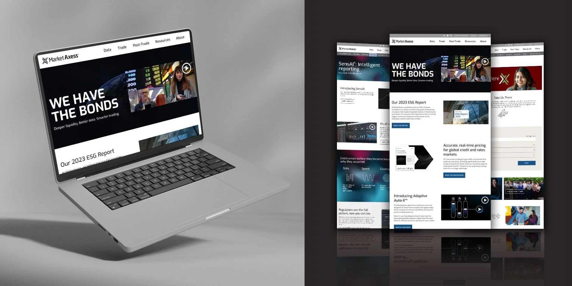 Liquidity. Openness. Opportunity. MarketAxess transforms how the global fixed-income marketplace connects and transacts with a platform that makes trading more transparent and straightforward. We designed and modernized their brand from sketch to launch to reveal the revolutionary potential of this innovative marketplace. By creating a new logo, brand guidelines, video content, sales materials, advertising, earned media, and website, we enabled MarketAxess to spark deeper engagement and build enduring relationships with their multi-faceted audience.