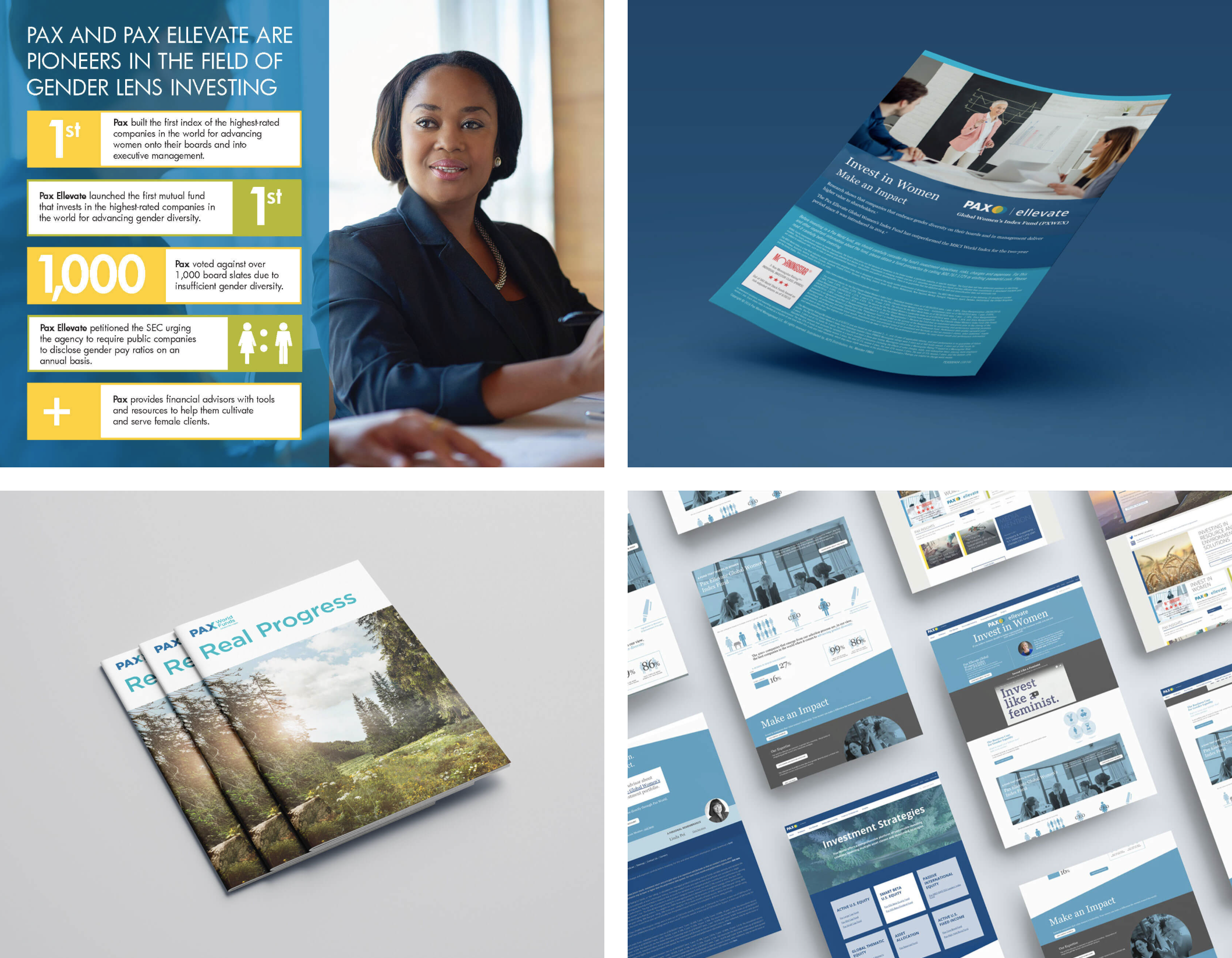 For many of today’s informed investors, social responsibility is as important as returns. As a pioneer in the purpose-led investing sector, Pax World wanted to show this new generation how their money can make an impact globally. Our campaign positioned Pax World as the go-to partner for ESG investing through rich video content, brand messaging, a new website, stunning design, advertising and social media. A highlight of the campaign is the animated video titled “Invest Like A Feminist,” showcasing the powerful effect that women in leadership positions have on business.